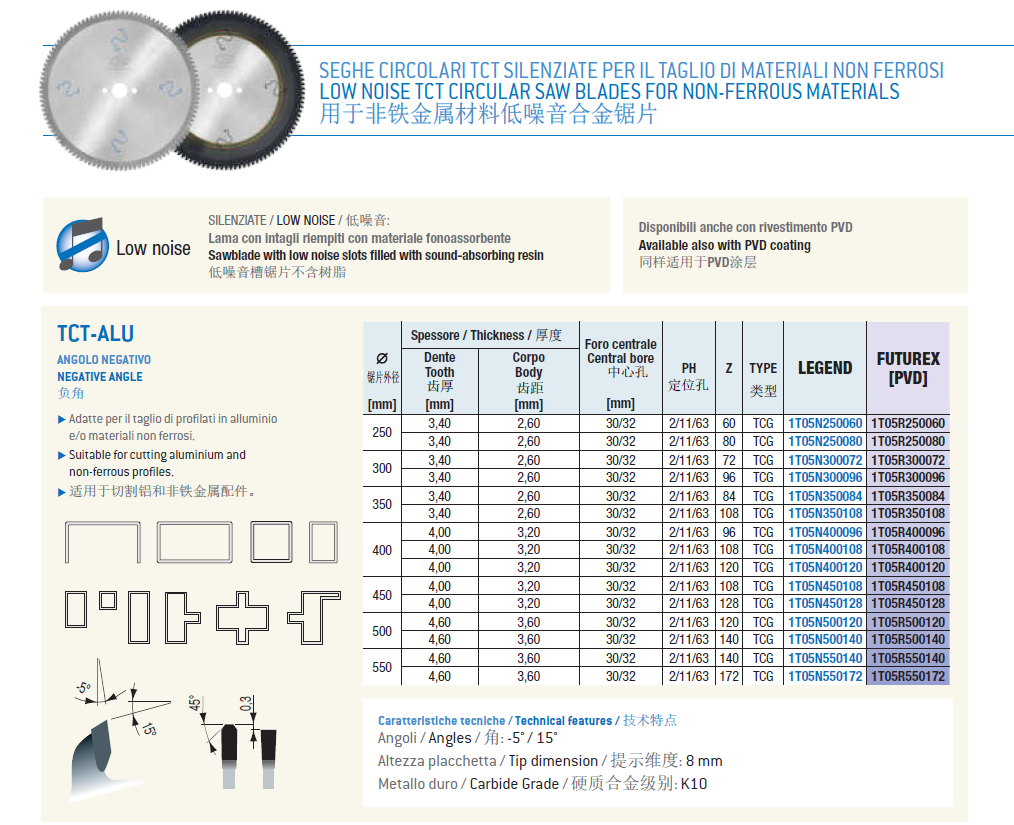 Lưỡi cưa TCT cho nhôm định hình D450x4.0/3.2x32x108Z PVD coating